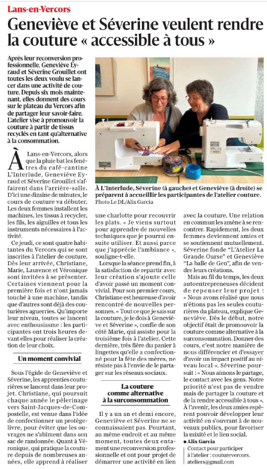 Difficile de faire court pour parler de « La Couture » mais je suis persuadée que nous pouvons tous et toutes y trouver notre place en fonction de nos envies et nos besoins !"